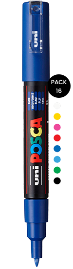 The POSCA water-based marker writes on any surface such as paper, metal, glass, plastic, wood, fabric and stone. Also POSCA features vibrant colors and used by artists all over the world